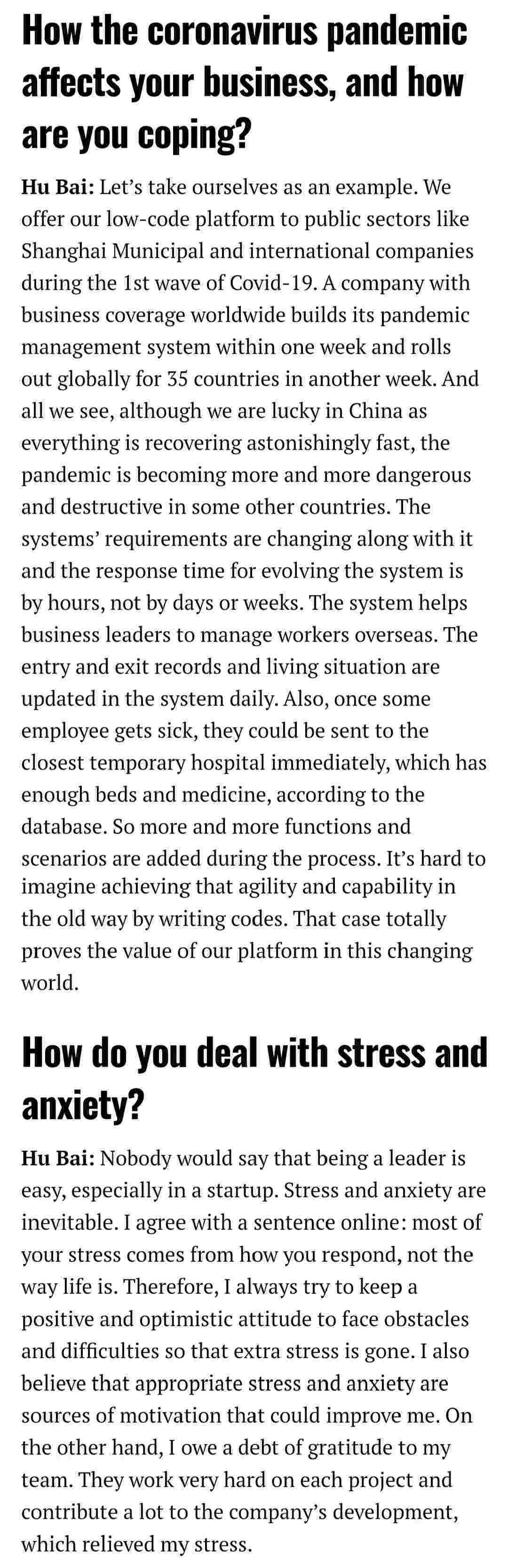 2021年年初,,爱湃斯科技CEO胡柏受邀接受法媒Startup.info的专访,,,与Startup info的读者分享了自己的创业经历、、以及低代码平台小米钱包的创新之处。。。